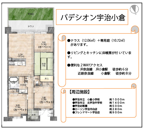 | 交通 | 近鉄京都線「小倉」より徒歩8分/JR奈良線「JR小倉」より徒歩6分 |